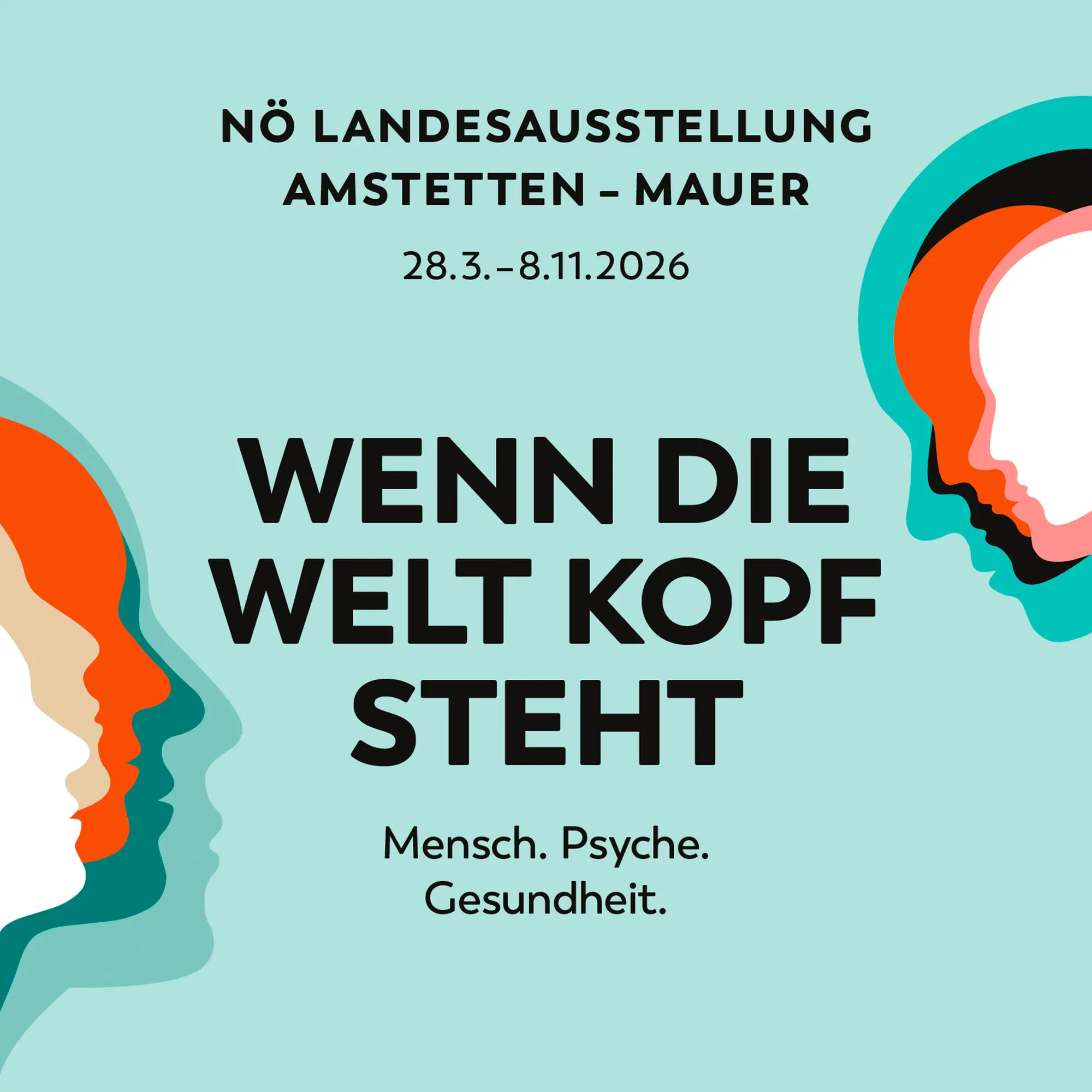 Die Niederösterreichische Landesausstellung 2026 „WENN DIE WELT KOPF STEHT – Mensch. Psyche. Gesundheit.“ zeigt künstlerisch die Herausforderungen psychischer Erkrankungen, ihre Auswirkungen auf Betroffene und Angehörige sowie den gesellschaftlichen Umgang damit im Wandel der Zeit.